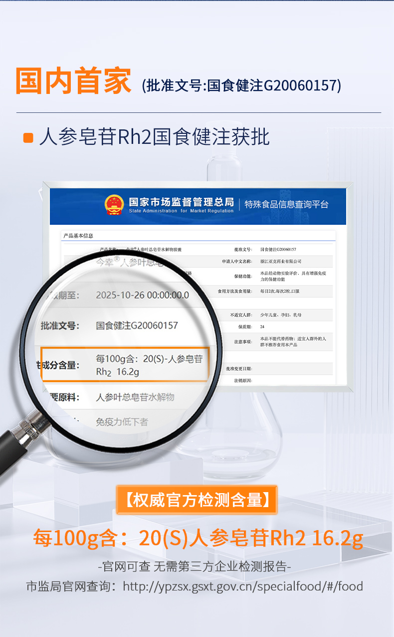 成分含量:每100g含人参皂苷Rh2 16.2g。