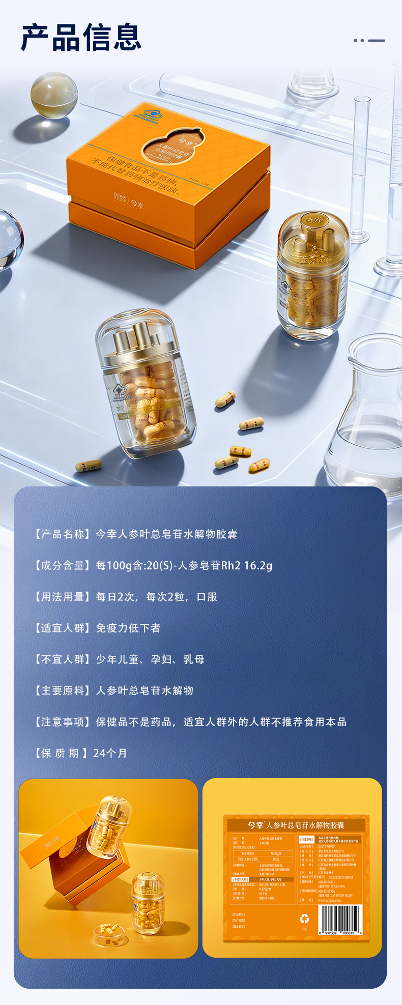 今幸胶囊4代 稀有单体人参皂苷Rh2增强S型 60粒装 小分子高含量好吸收