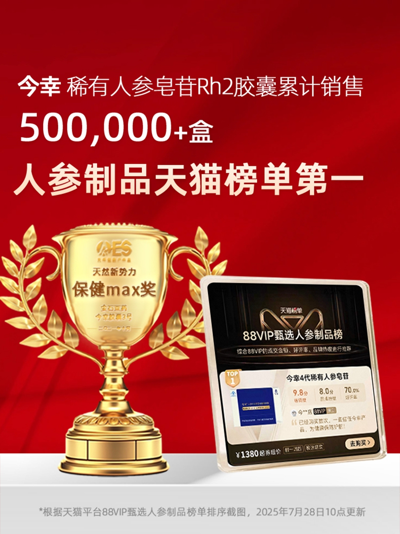 今幸胶囊4代 稀有单体人参皂苷Rh2增强S型 180粒装 小分子高含量好吸收