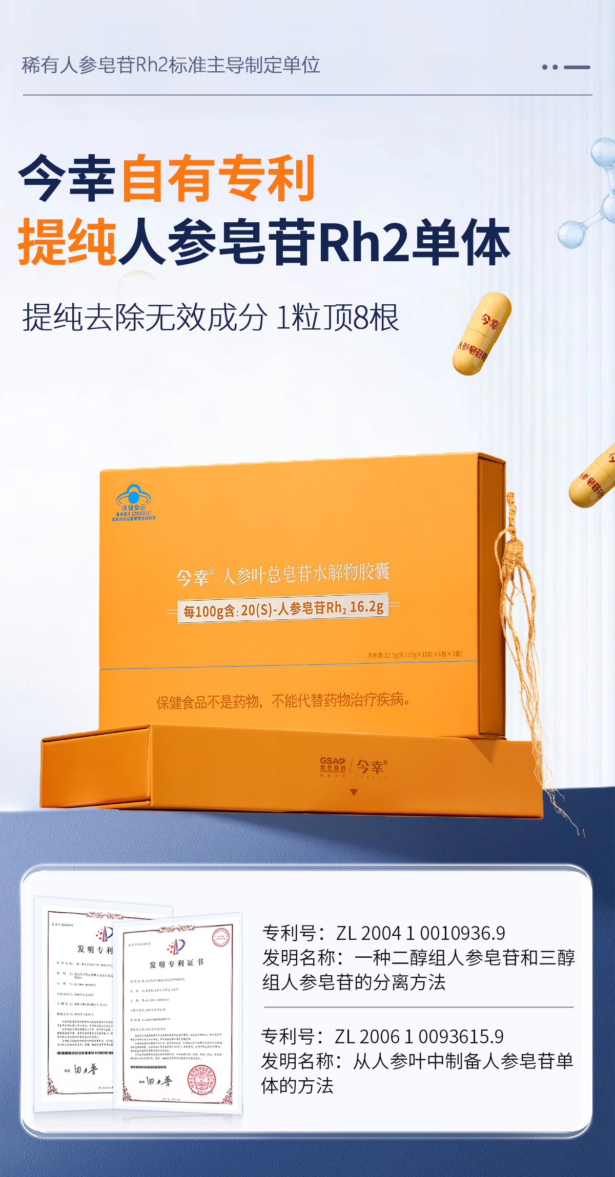 人参皂苷Rh2今幸胶囊4代 稀有单体人参皂苷Rh2增强S型 60粒装 小分子高含量好吸收