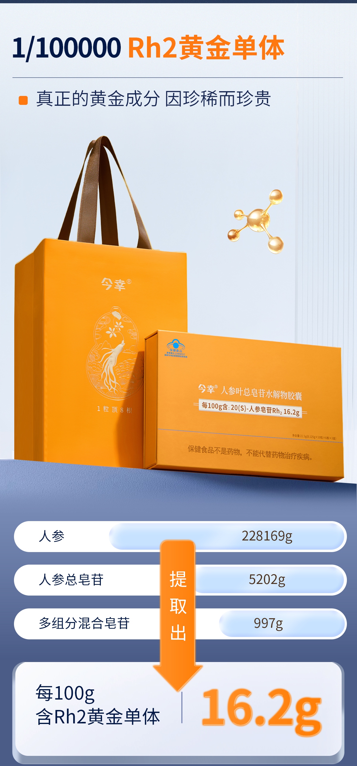 成分含量:每100g含人参皂苷Rh2 16.2g。